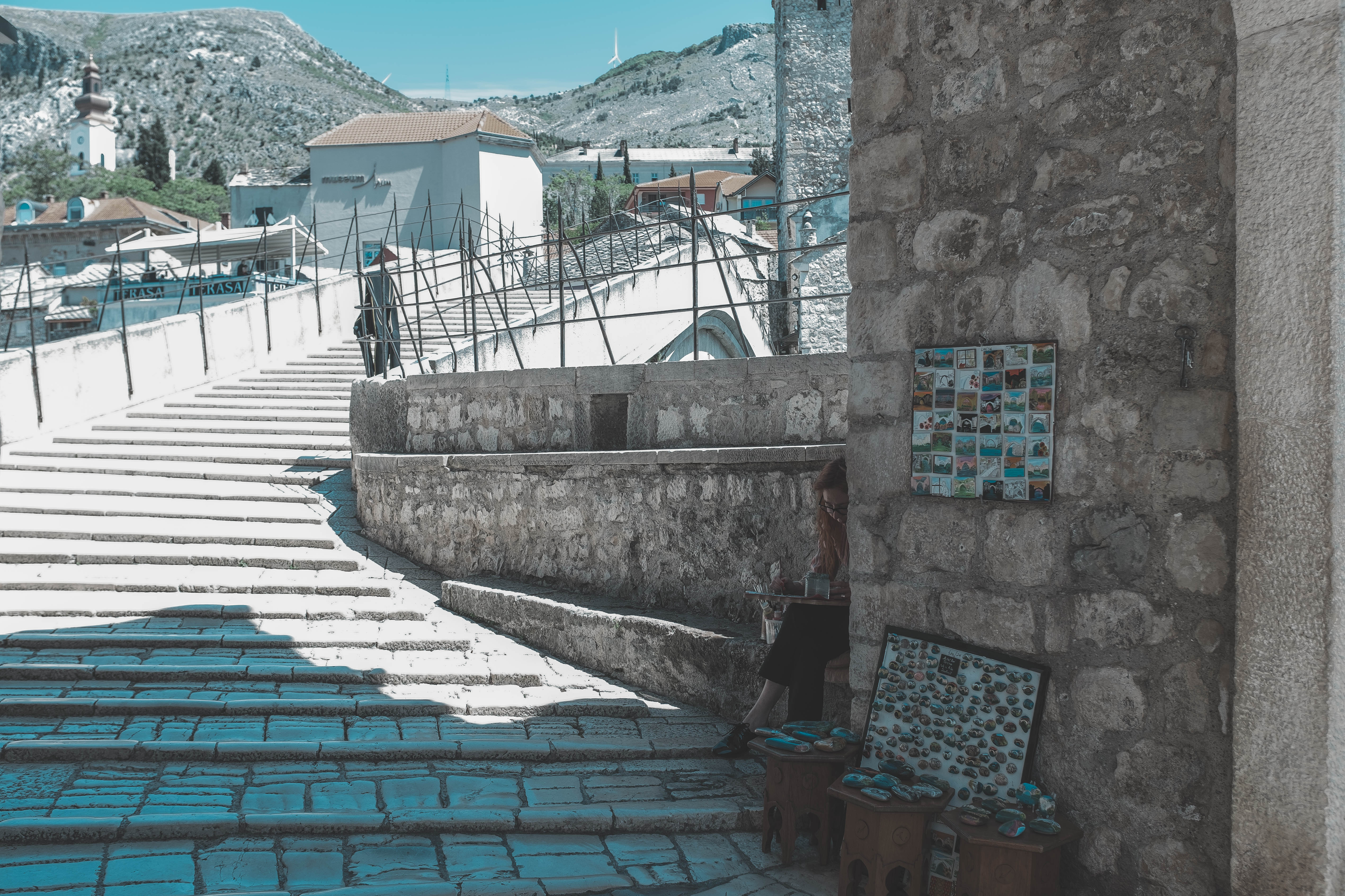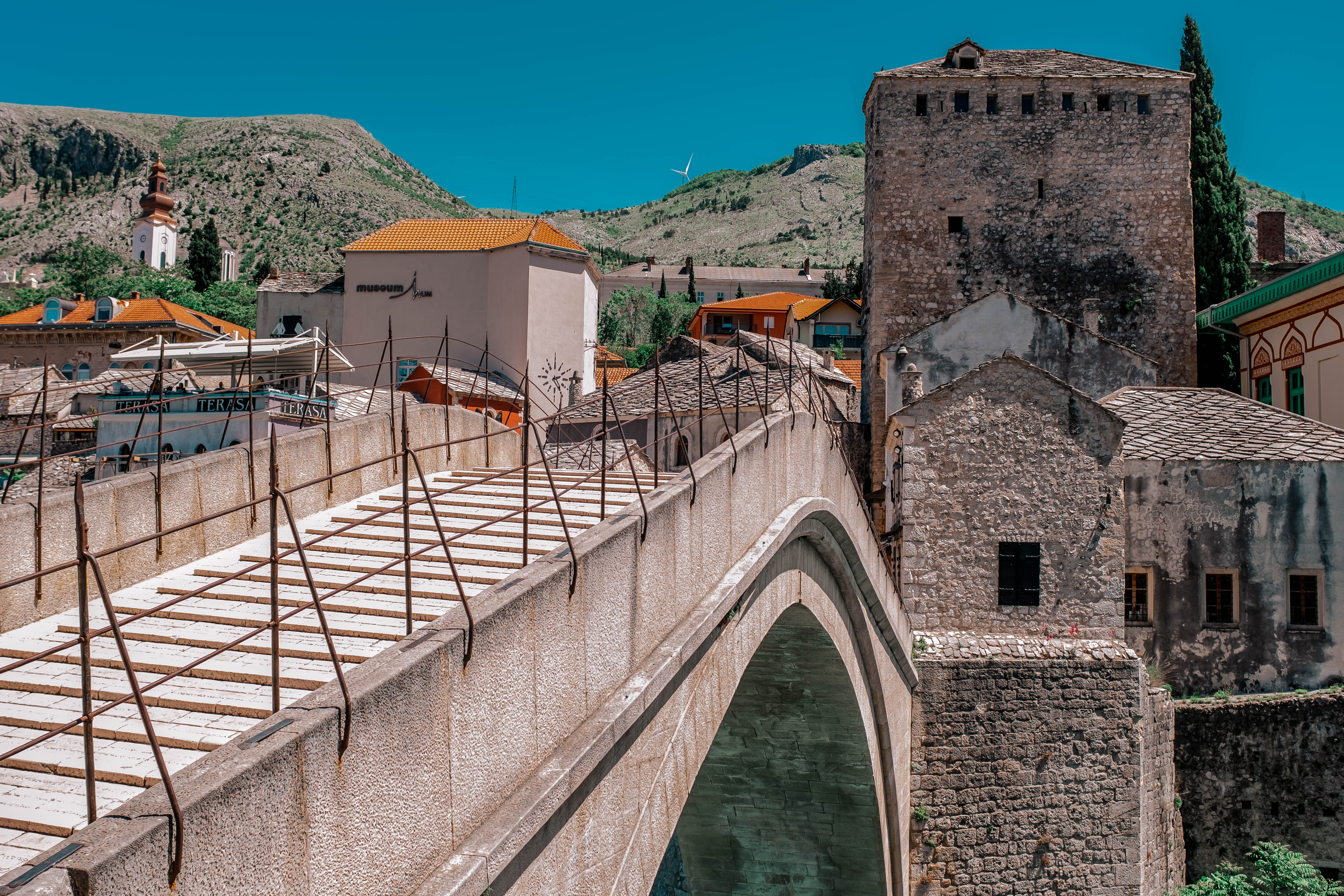 In the 1990s conflict, however, most of the historic town and the Old Bridge, designed by the renowned architect Sinan, was destroyed. The Old Bridge was recently rebuilt and many of the edifices in the Old Town have been restored or rebuilt with the contribution of an international scientific committee established by UNESCO.