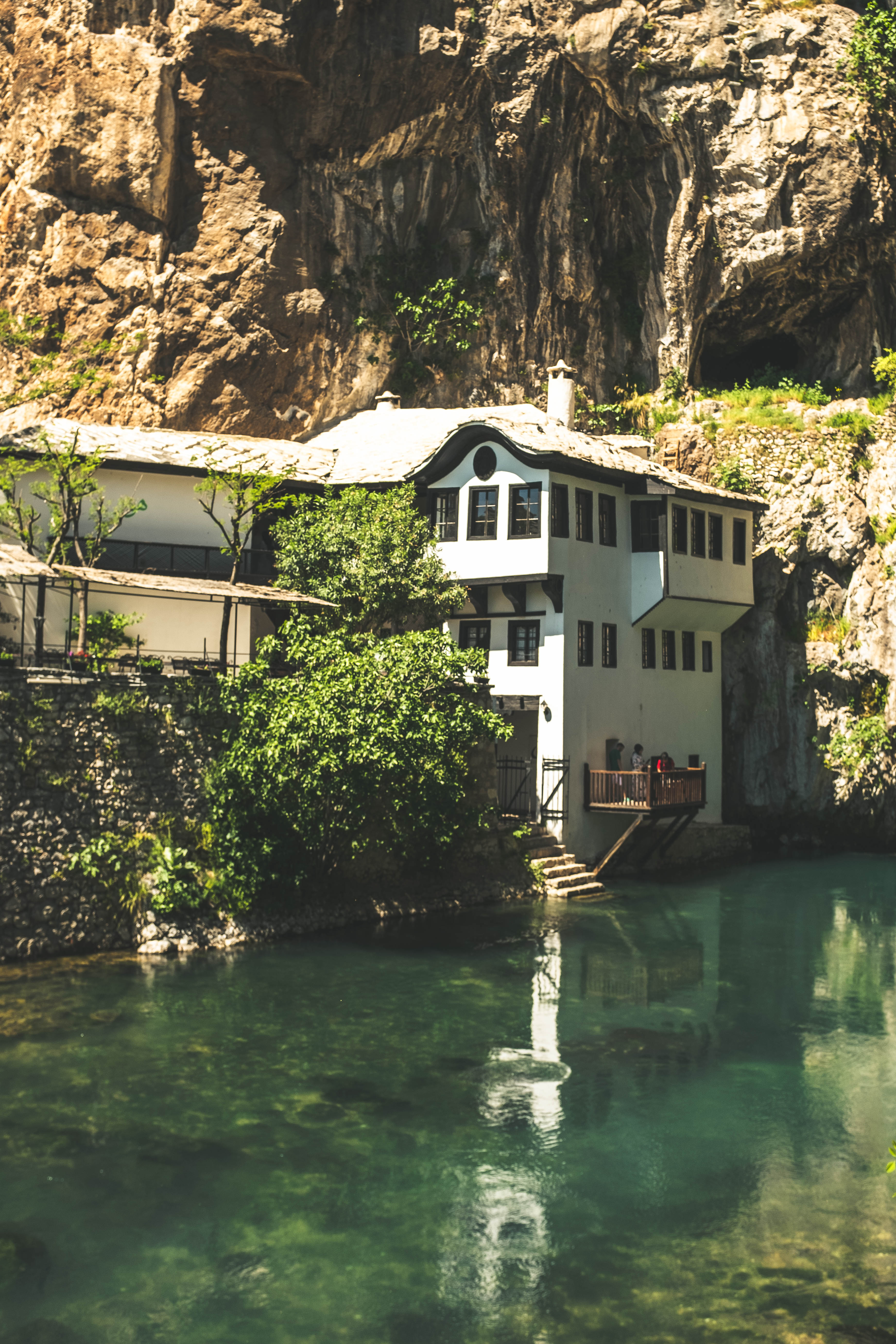 Blagaj Tekija is a Dervish monastery outside Mostar, Bosnia, that’s nearly 600 years old. Situated at the base of a cliff, next to the source of the river Buna, it’s a unique and picturesque series of buildings…. The Tekija (or Tekke) was first founded during the height of the Ottoman empire.