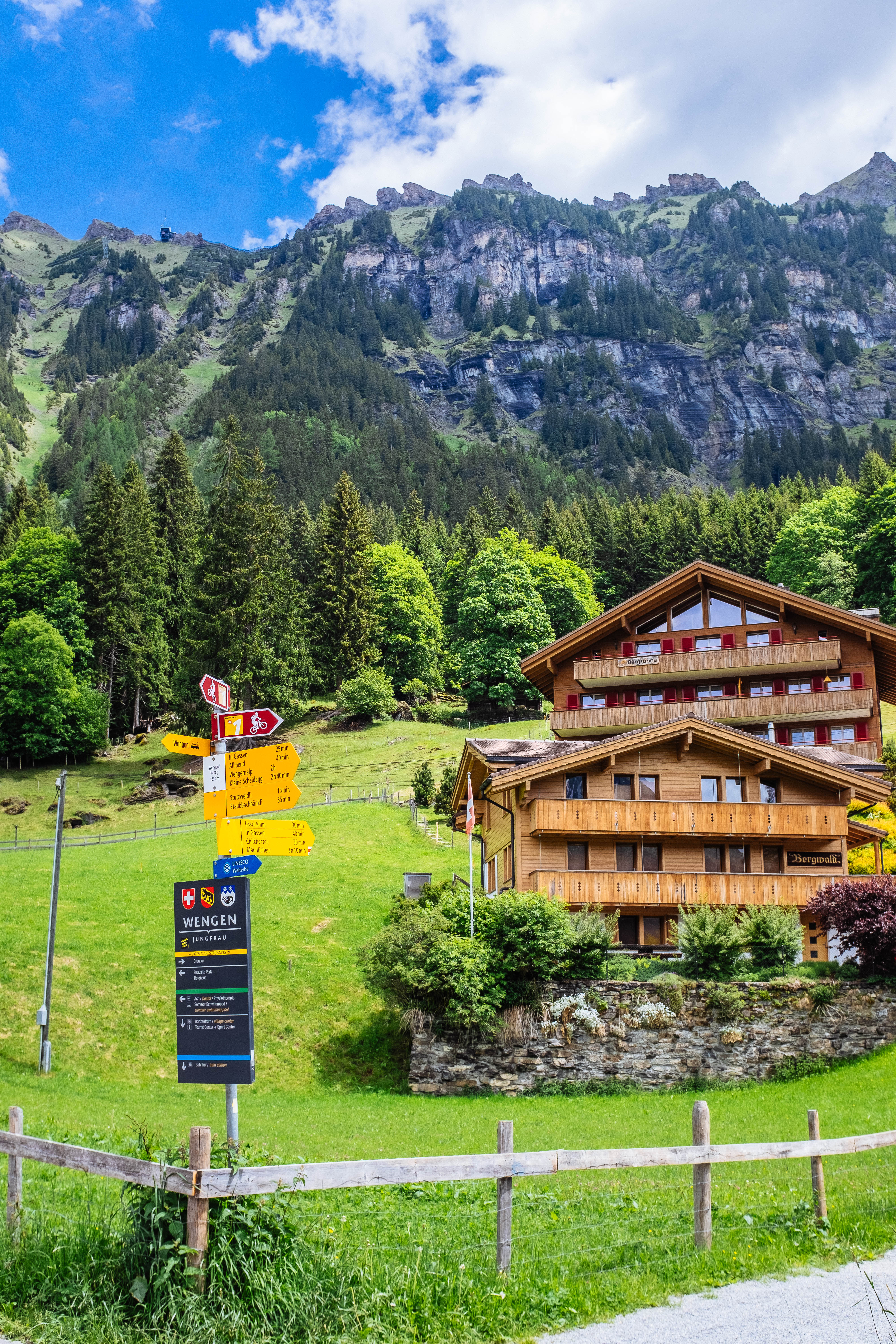 Lauterbrunnen is situated in one of the most impressive trough valleys in the Alps, between gigantic rock faces and mountain peaks. With its 72 thundering waterfalls, secluded valleys, colourful alpine meadows and lonely mountain inns, the Lauterbrunnen Valley is one of the biggest nature conservation areas in Switzerland.