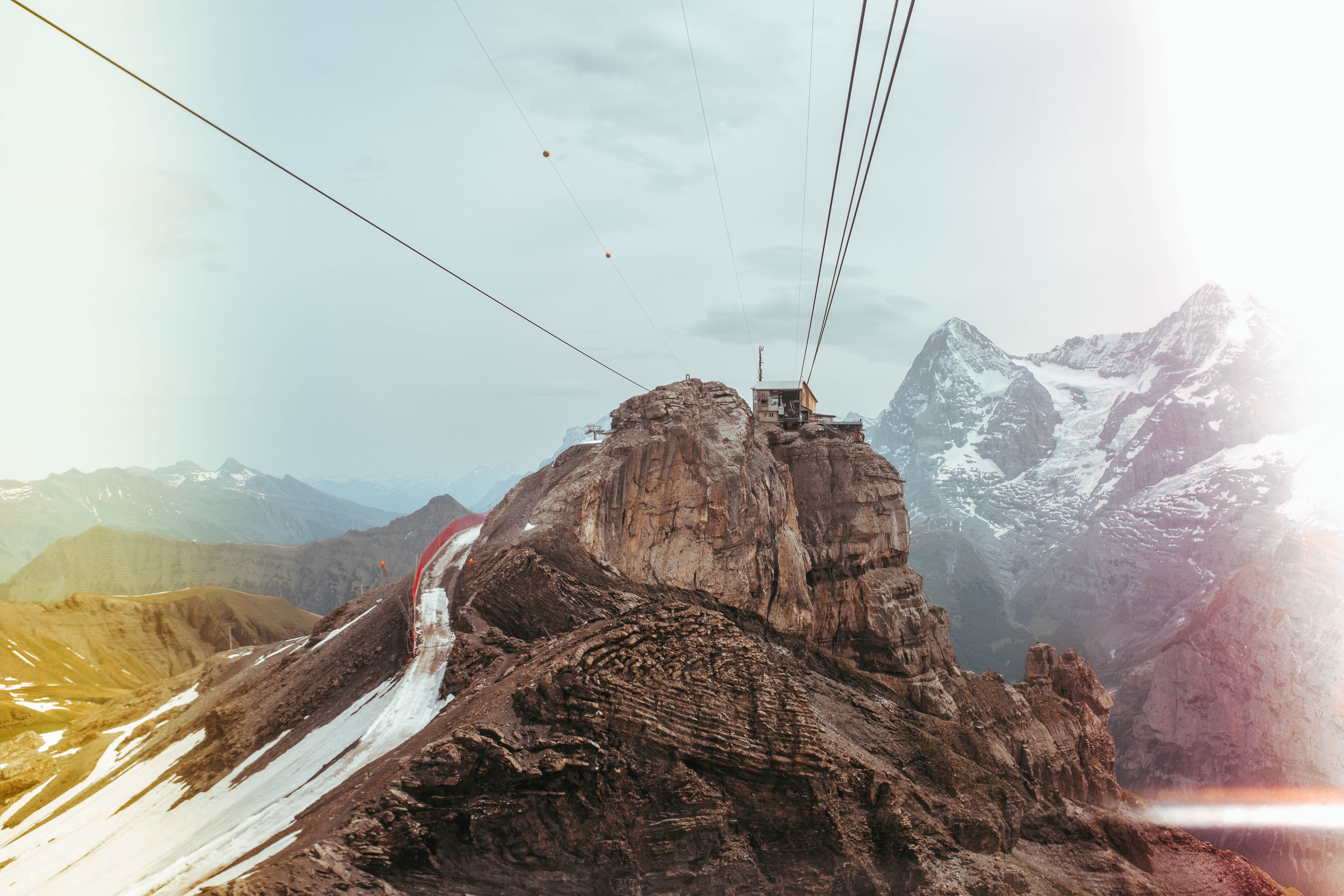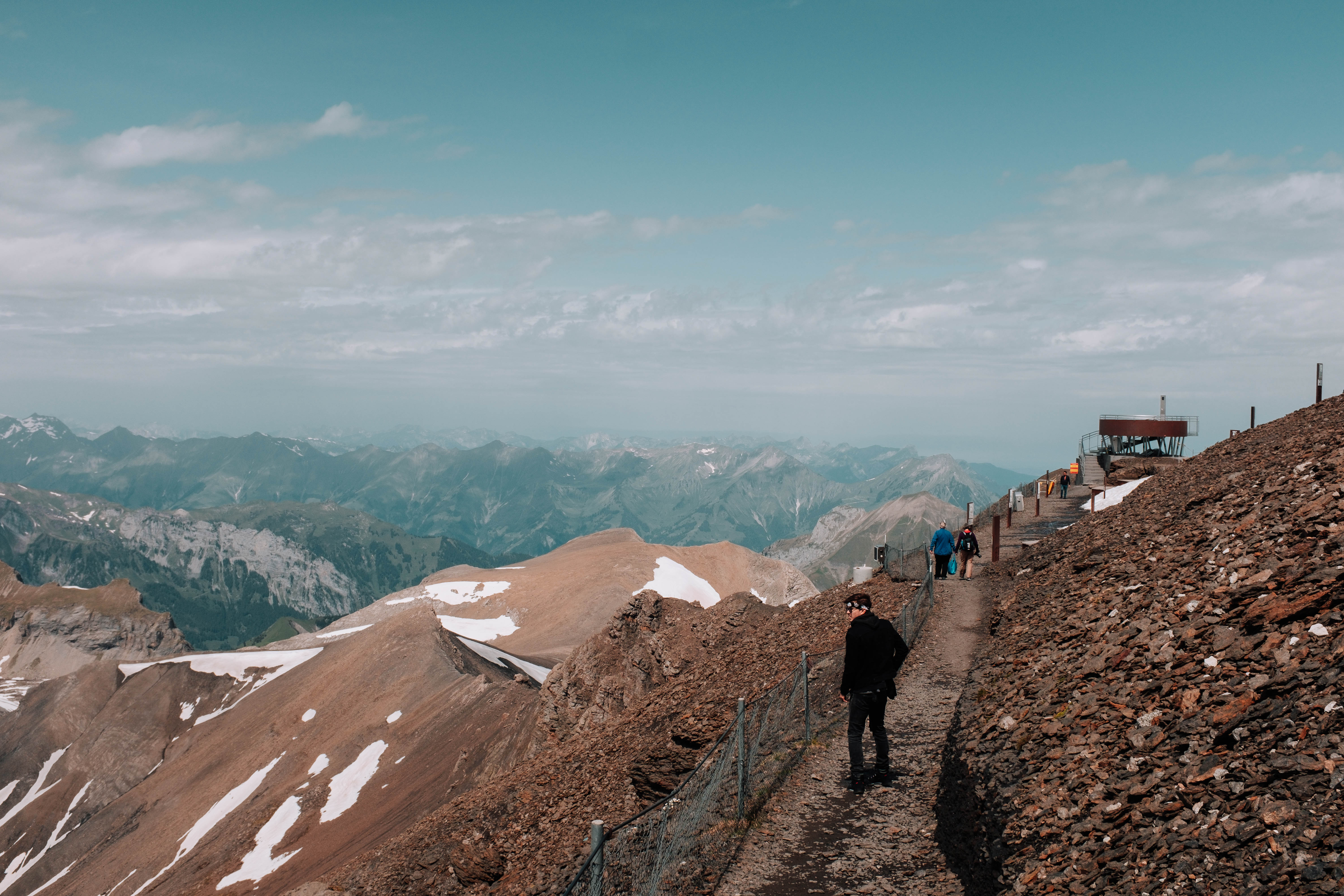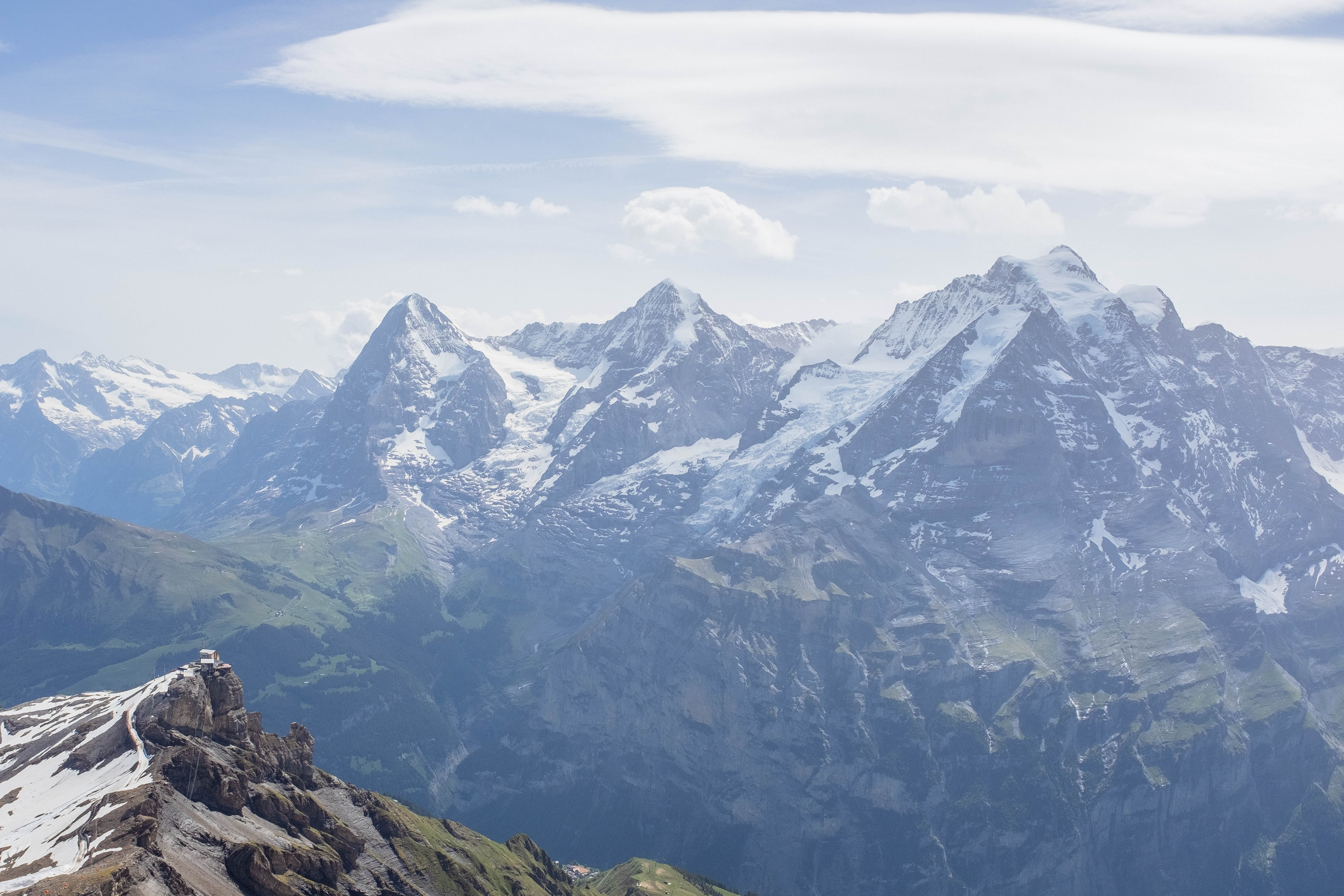 The Schilthorn is a summit in Europe, in the Bernese Alps of Switzerland. It overlooks the valley of Lauterbrunnen in the Bernese Oberland, and is the highest mountain in the range lying north of the Sefinenfurgge Pass. The Schilthorn lies above the village of Mürren, from where a cable car leads to its summit.