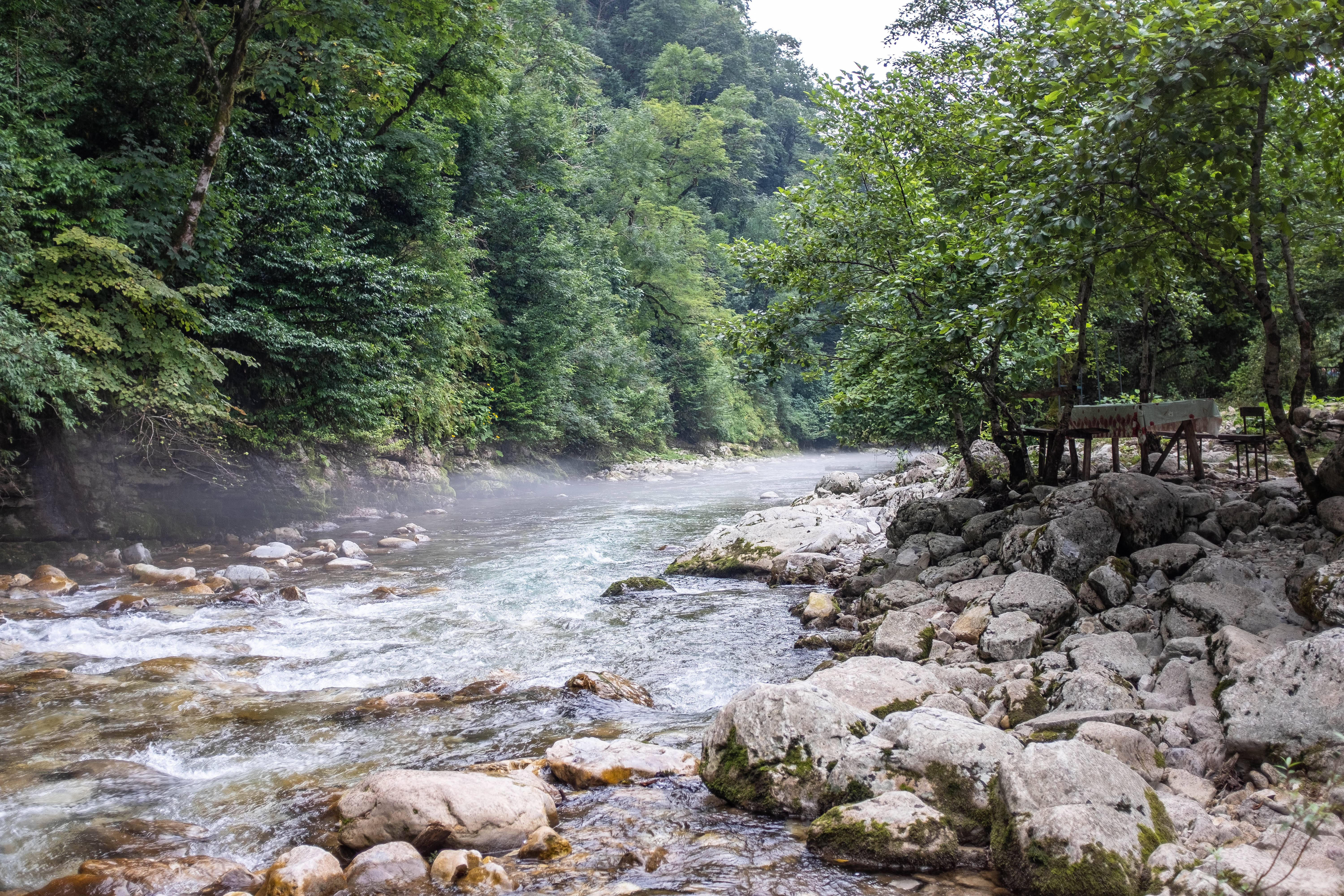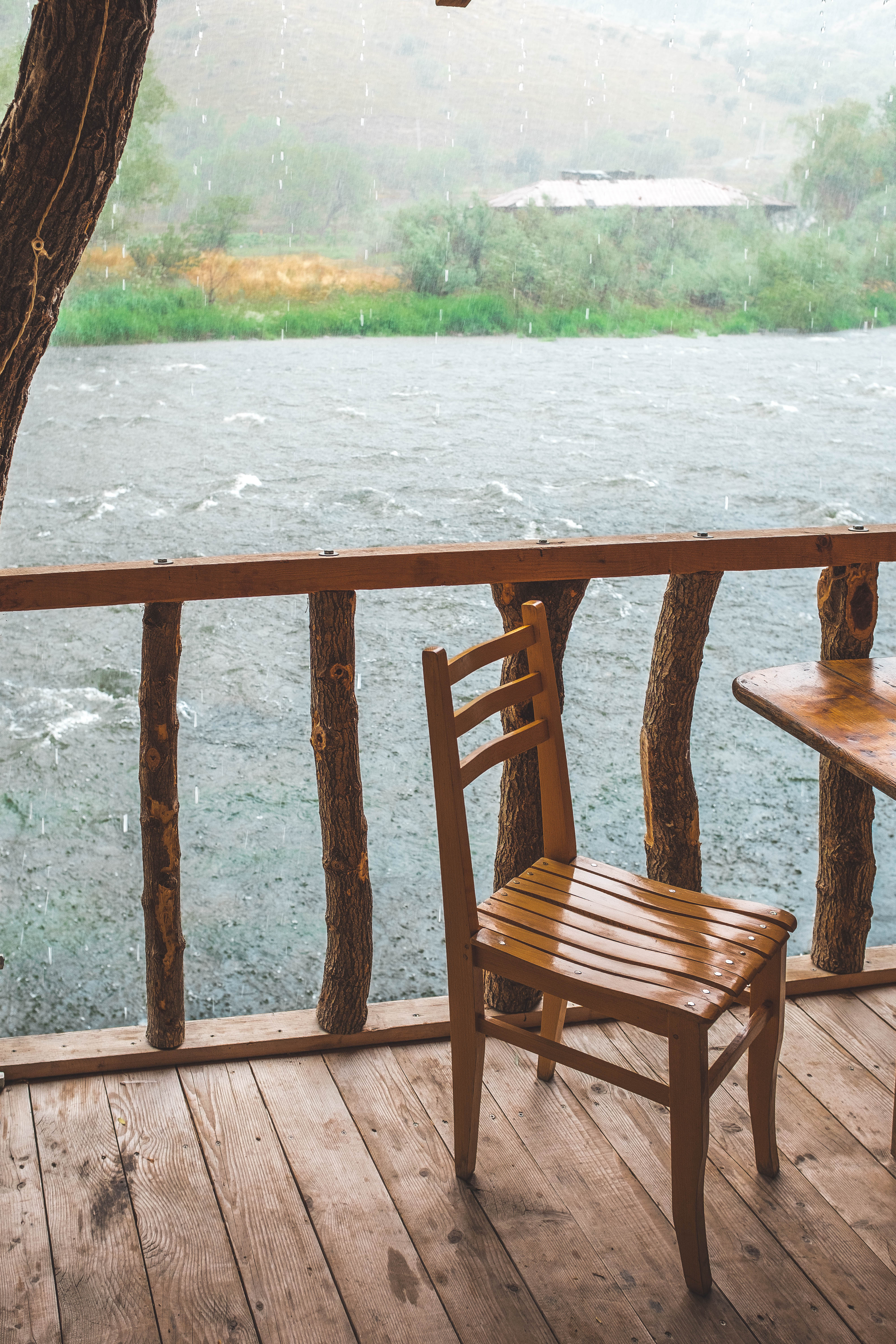 Laika, Florian, and I took a seat at a restaurant at the base of Vardzia. It was next to a river, and the sky was very grey with overcast clouds. Any minute it was likely to rain. How would this impact our visit to Vardzia? We each ordered a glass of wine, and then a torrent of rain began to fall.