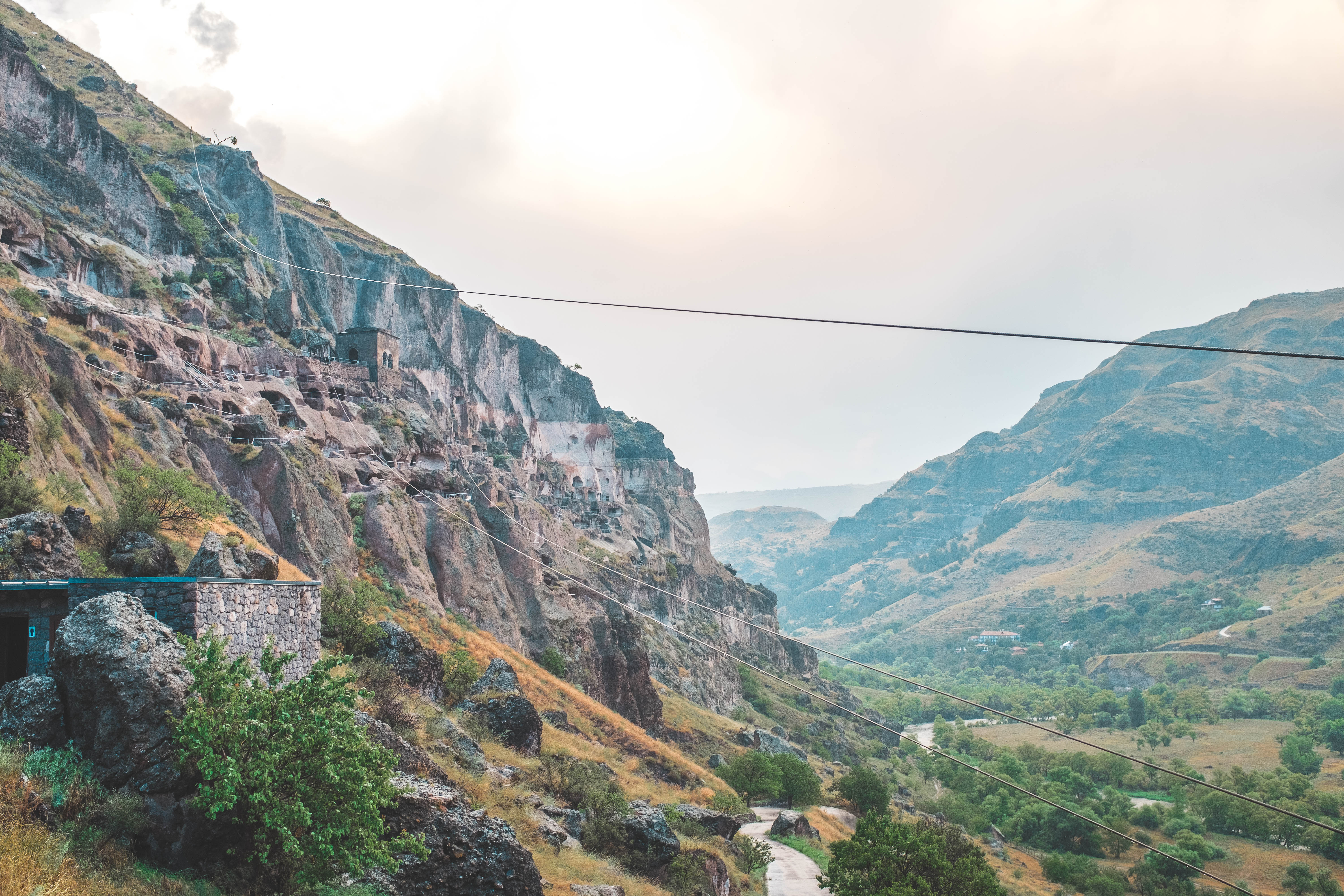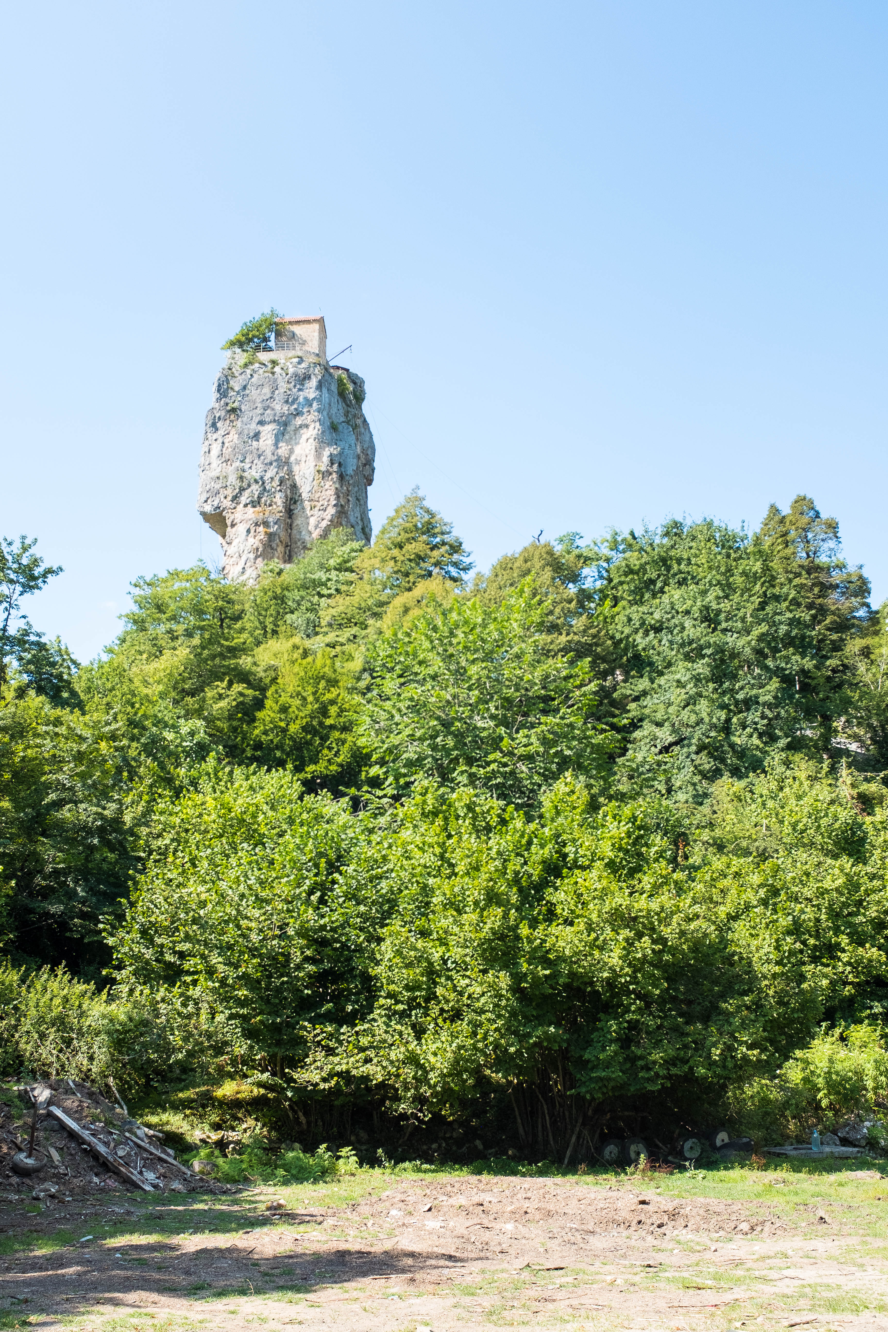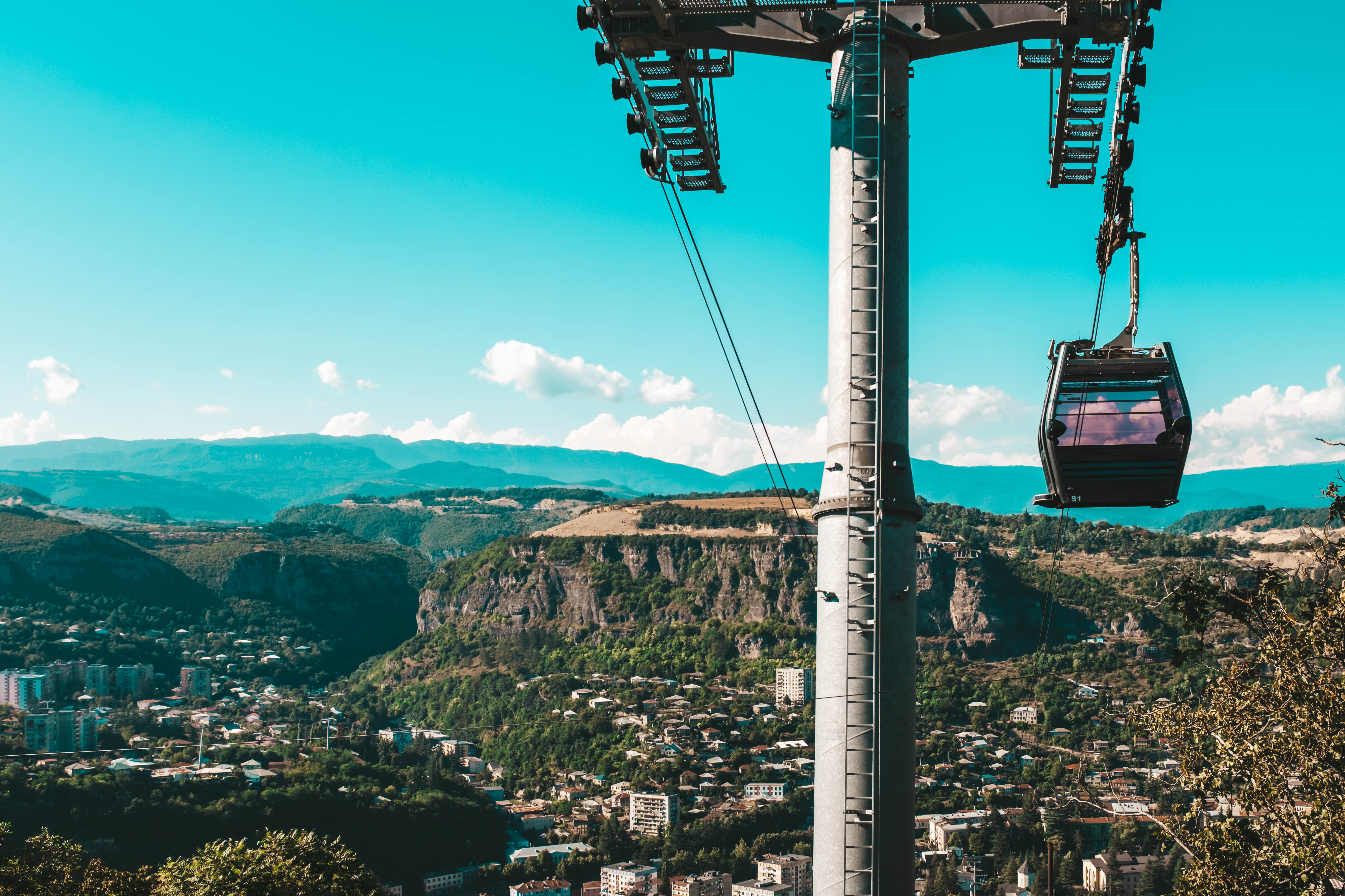 The fourth and last day of our trip, Levan would drive us back to Tbilisi so that Laika and I could catch our 3am flight the next day back to Doha. Still, Levan wanted to make the most of the day, so we stopped at several churches in Kutaisi before driving to the Katshki Pillar, a limestone monolith with a little church sitting on top. A ladder runs from the ground to the top of the pillar. There is a locked gate at the base of the ladder because only one monk is allowed to inhabit the church and perform religious duties. After the pillar, we drove to Chiatura, a mining town that sits in a valley. Due to the steepness of the valley, several cable cars extend from the peaks of the valley to a central station in the base of town. We stopped and took a short ride in one of these cable cars. The town and the surrounding area are quite picturesque. However, years of mining and mining runoff have polluted the river that runs through the center of the town. The water in this river resembles a brown sludge, and Levan said there is a lot of pollution in the area. You can buy an apartment for $8000, but you would likely have to contend with weird illnesses and a shortened lifespan.