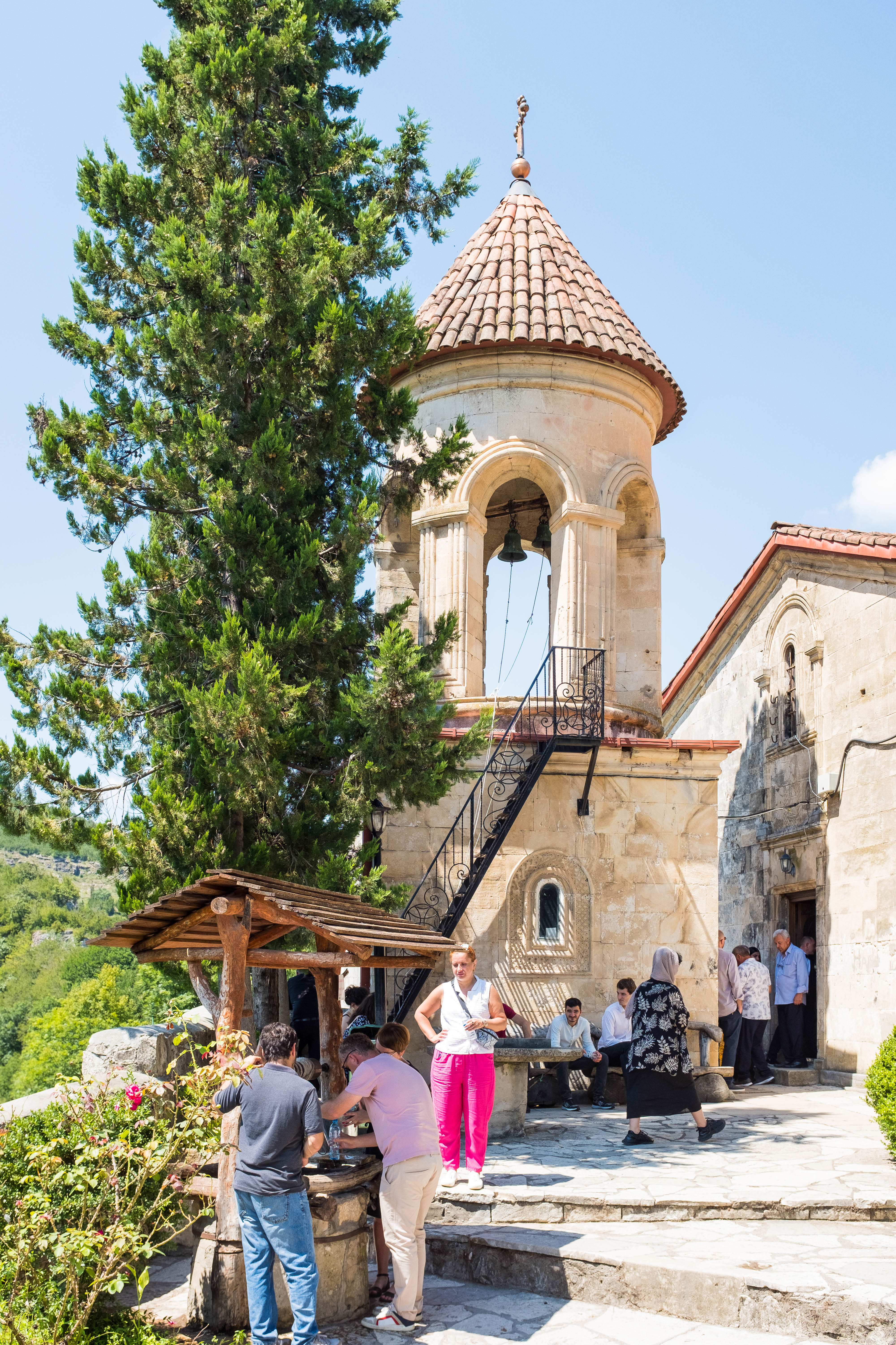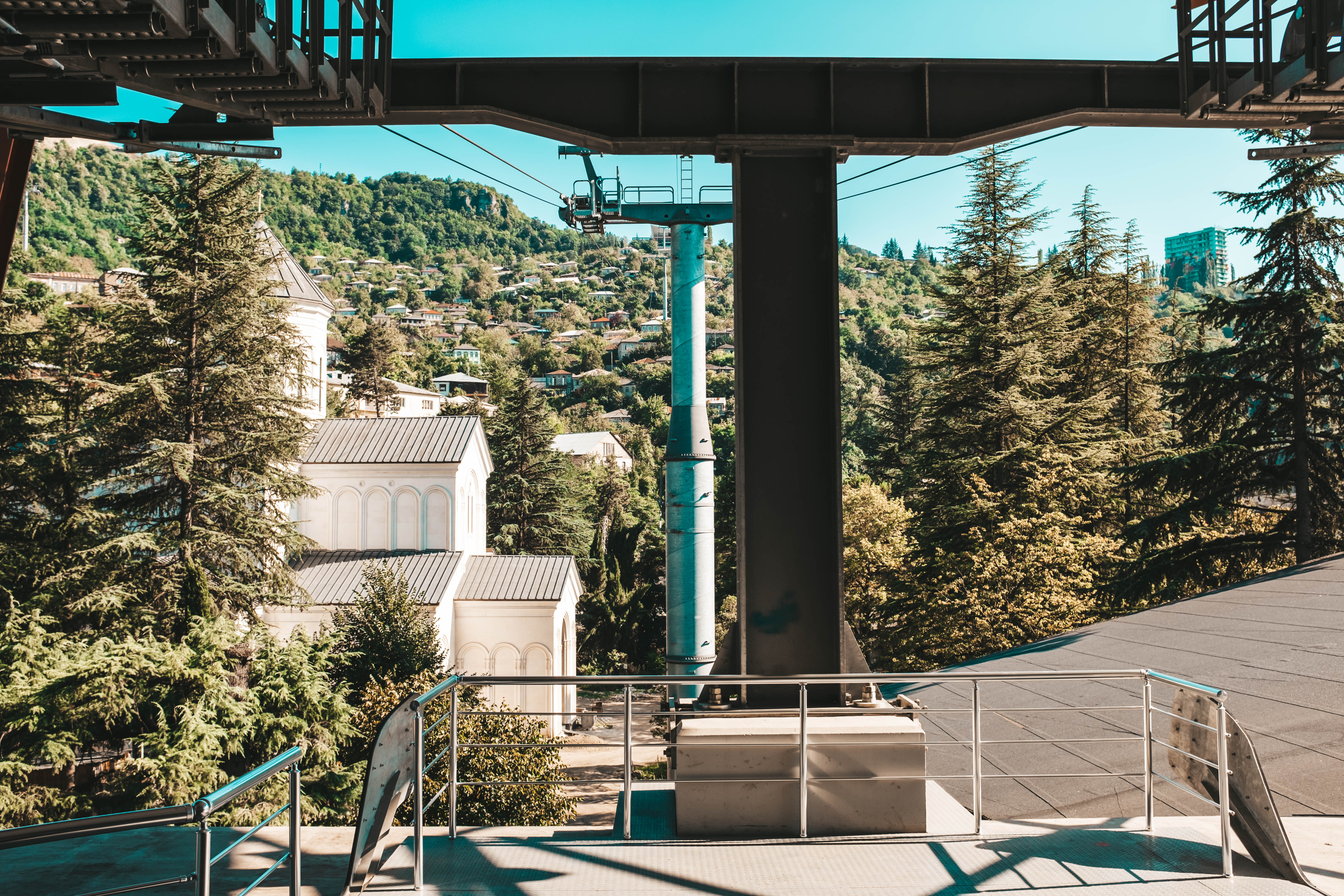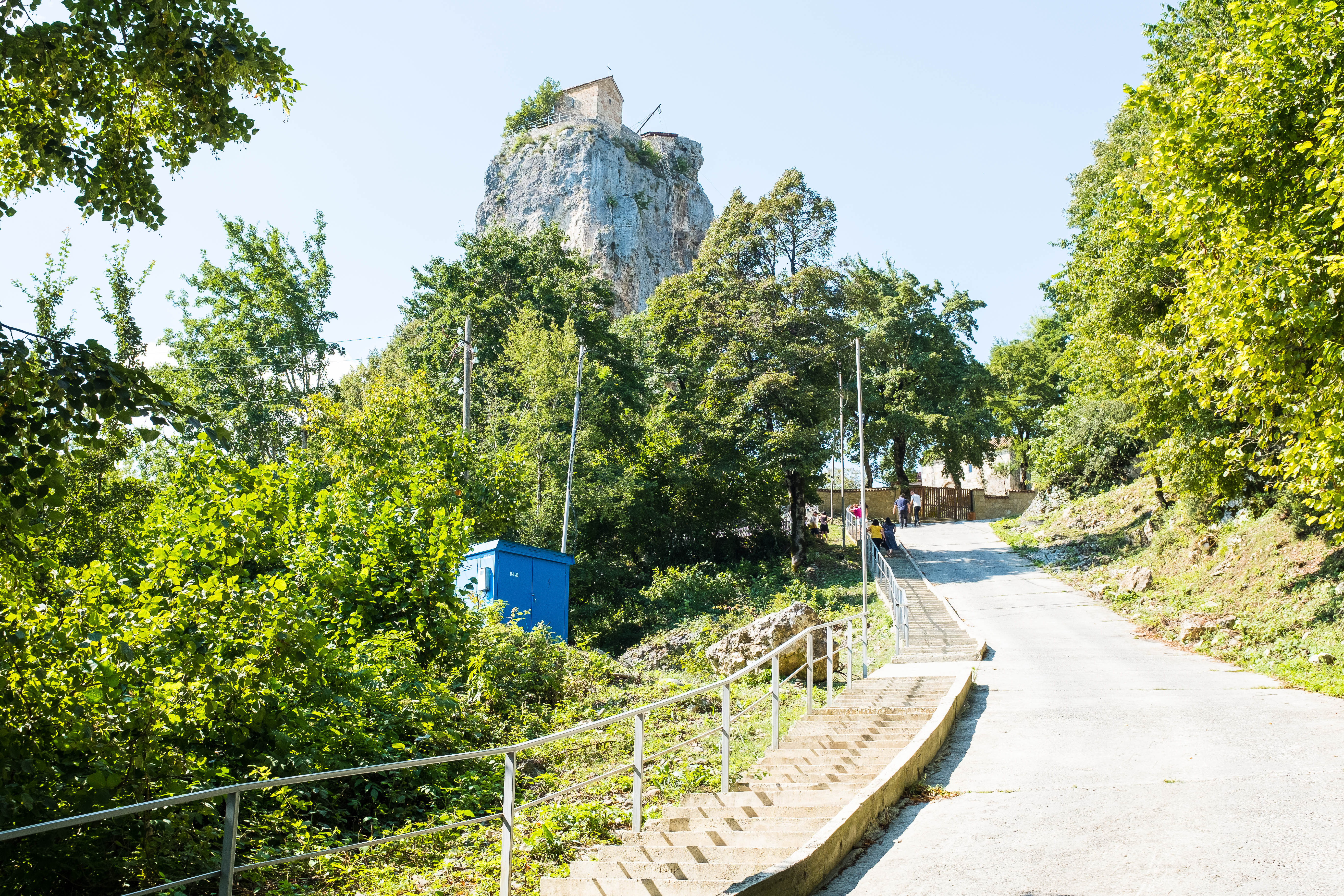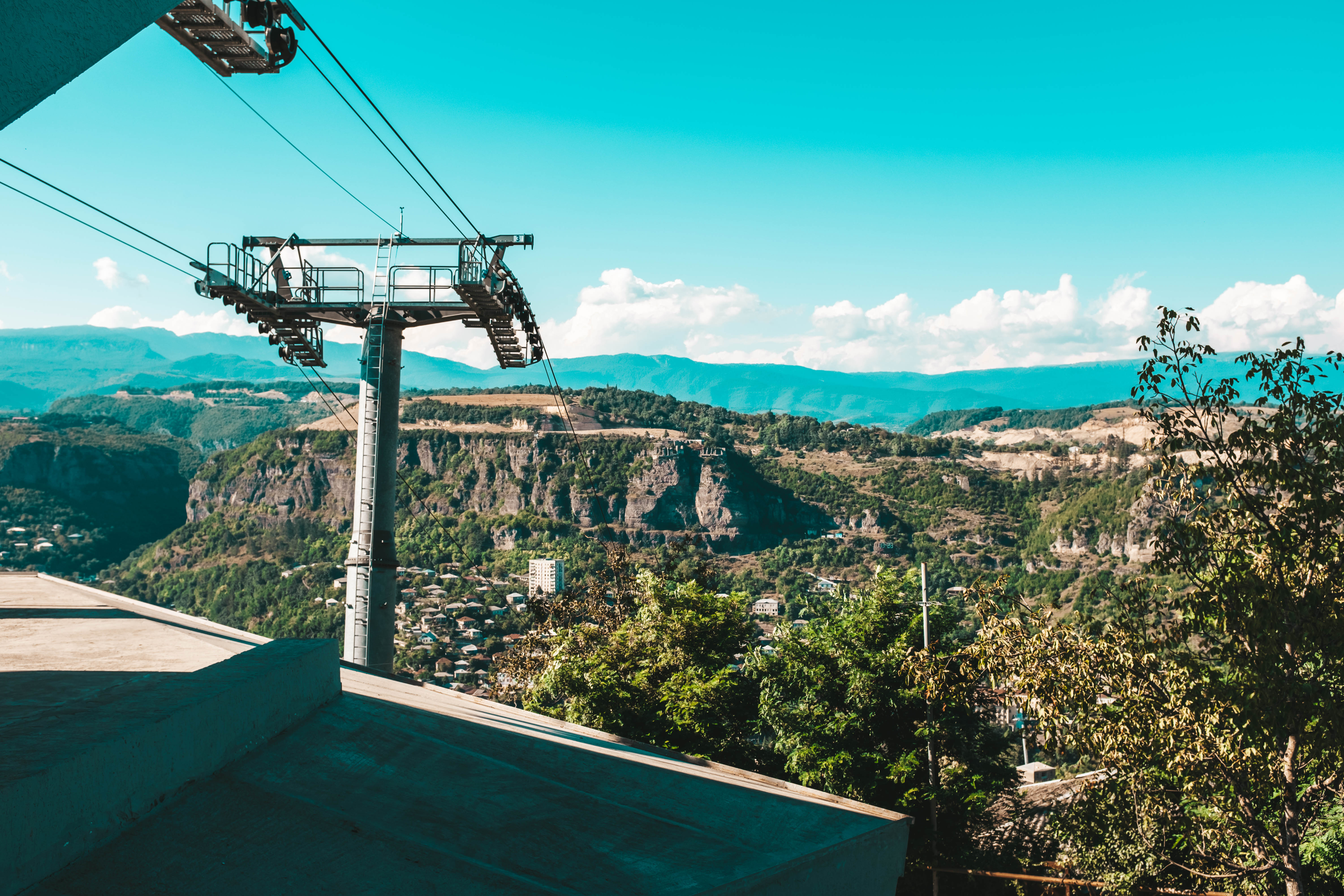 The fourth and last day of our trip, Levan would drive us back to Tbilisi so that Laika and I could catch our 3am flight the next day back to Doha. Still, Levan wanted to make the most of the day, so we stopped at several churches in Kutaisi before driving to the Katshki Pillar, a limestone monolith with a little church sitting on top. A ladder runs from the ground to the top of the pillar. There is a locked gate at the base of the ladder because only one monk is allowed to inhabit the church and perform religious duties. After the pillar, we drove to Chiatura, a mining town that sits in a valley. Due to the steepness of the valley, several cable cars extend from the peaks of the valley to a central station in the base of town. We stopped and took a short ride in one of these cable cars. The town and the surrounding area are quite picturesque. However, years of mining and mining runoff have polluted the river that runs through the center of the town. The water in this river resembles a brown sludge, and Levan said there is a lot of pollution in the area. You can buy an apartment for $8000, but you would likely have to contend with weird illnesses and a shortened lifespan.