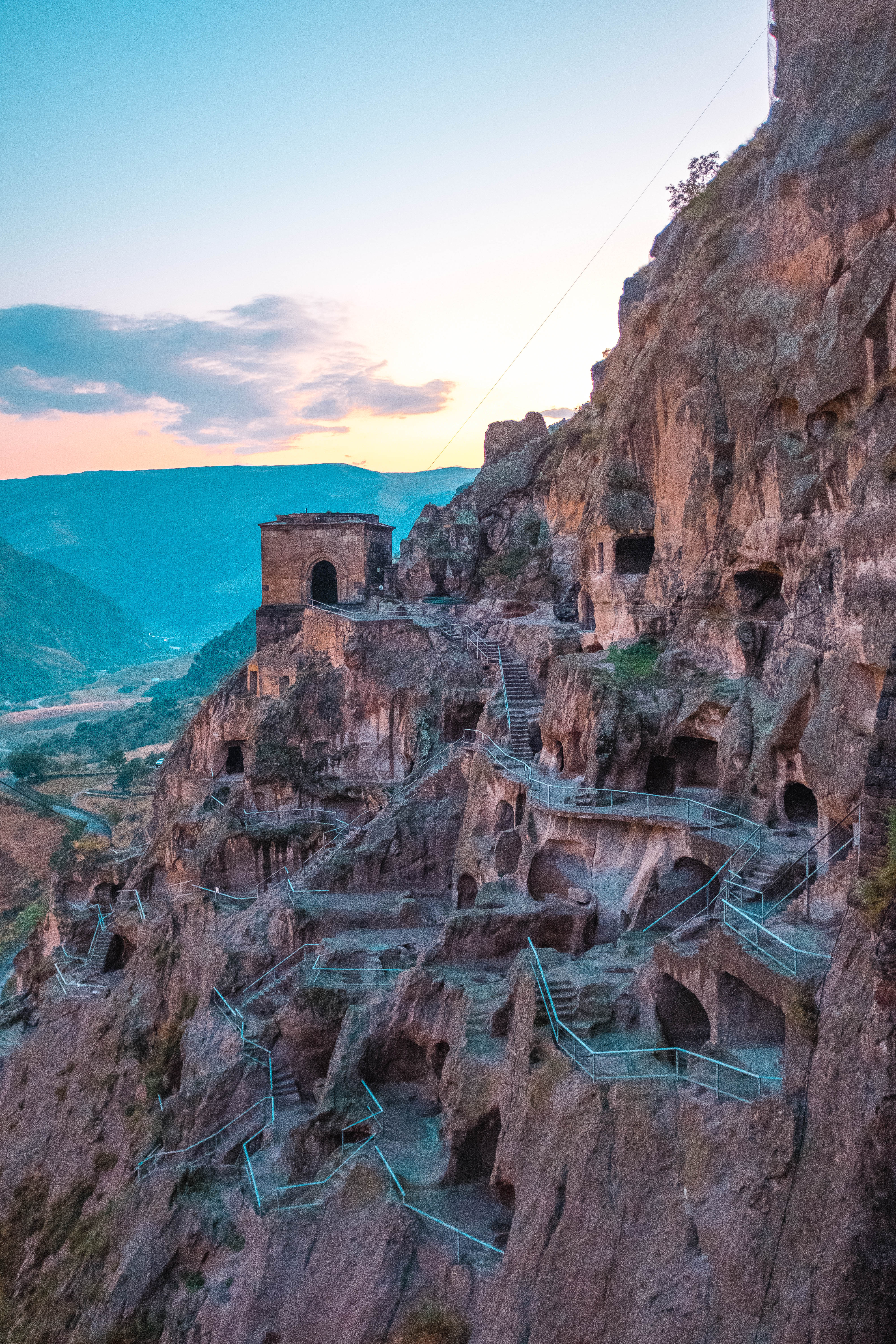 So, while are chances of visiting Vardzia seemed slim at first, we were now exploring it after a rainfall as the sun was starting to set, a perfect combination of light conditions to take pictures as the site was empty of all tourists–besides the four of us. (Also, there was a monk or two in the monastery performing religious duties, but they didn’t count.)
