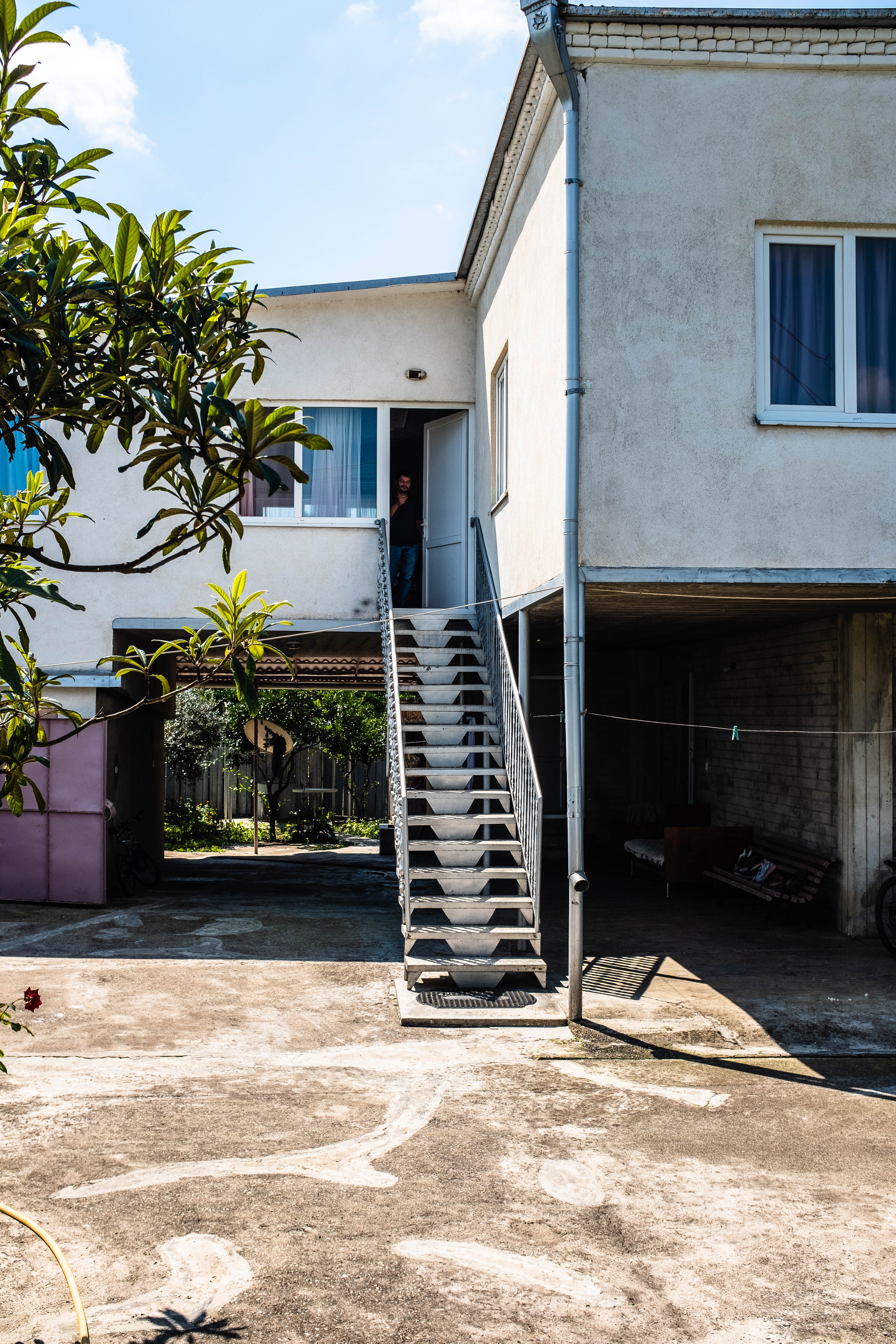 In Kutaisi, we were staying at his friend’s place. We would be staying on the second floor of a very spacious home. That night we would enjoy a homecooked meal and drink homemade Georgian wine. Levan’s friend was an older man who was often shirtless with his big belly protruding. The only other people at the house were the man’s daughter-in-law, her son, and a small puppy. The daughter-in-law was wearing a sundress and had a bored, pouty mannerism like the daughter in one of those farmer’s daughter jokes.
