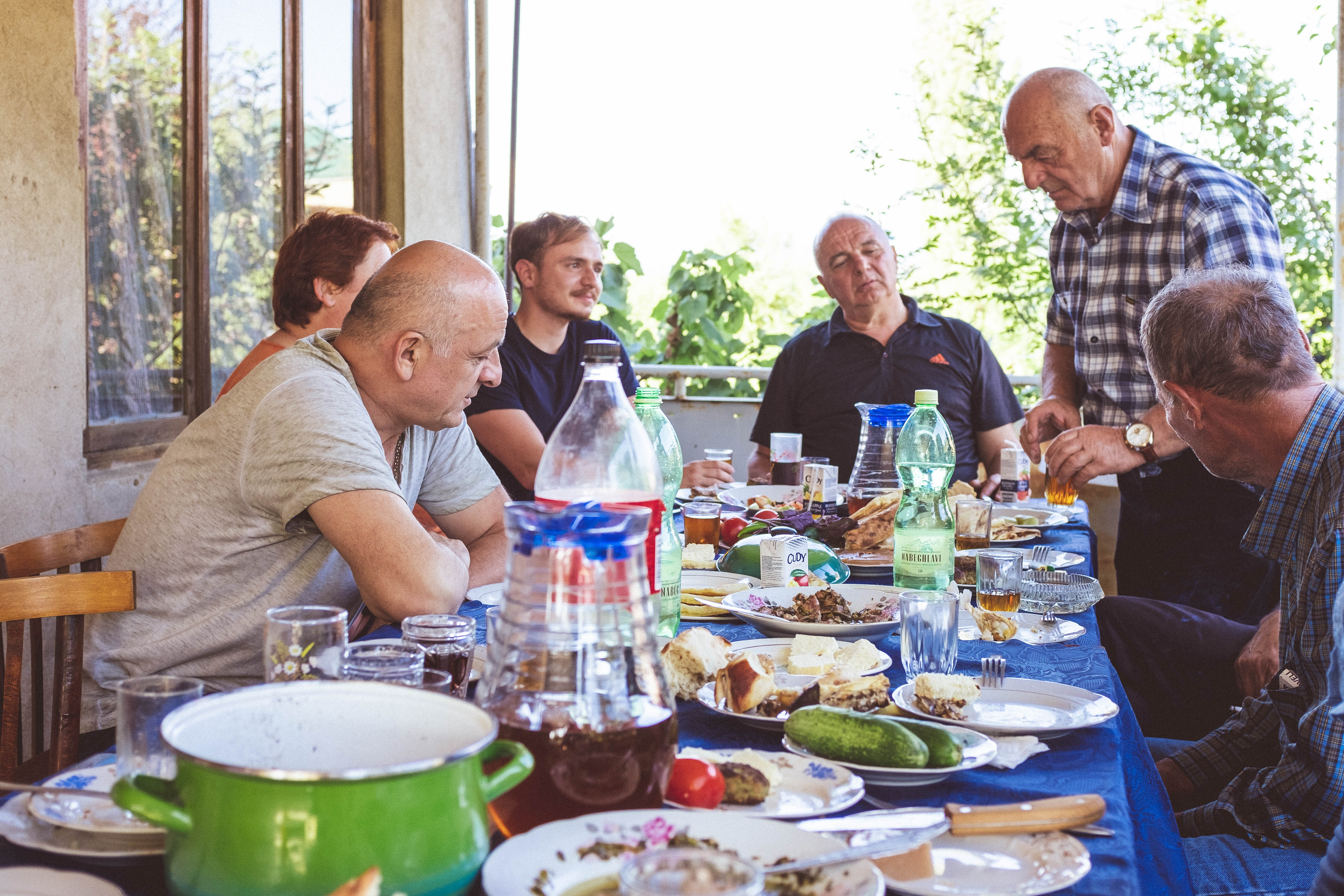 After a couple toasts, the French Georgian said that we had interrupted his nap. The family had been eating and drinking for the past two hours before we arrived, and everyone was in jovial spirits. During most of the homemade meals that I experienced, the men would eat and drink while the women cooked and served the men. Laika, being an American guest, was the exception. So, she asked Levan, at one point, if Georgian women ever drink with the men?